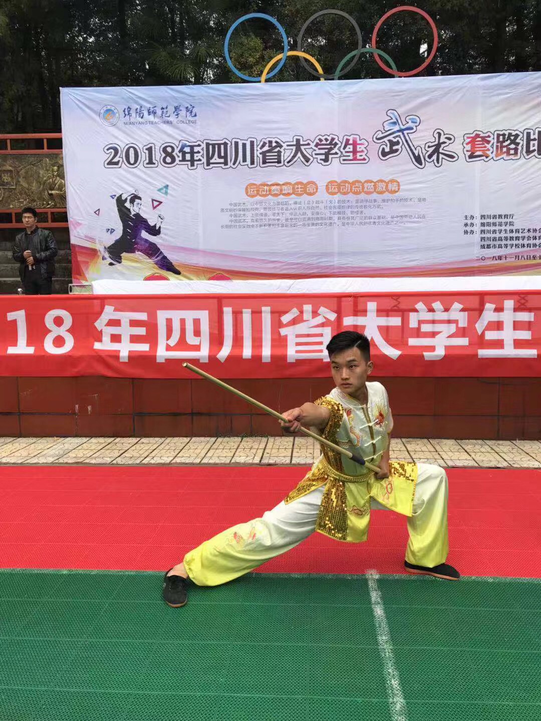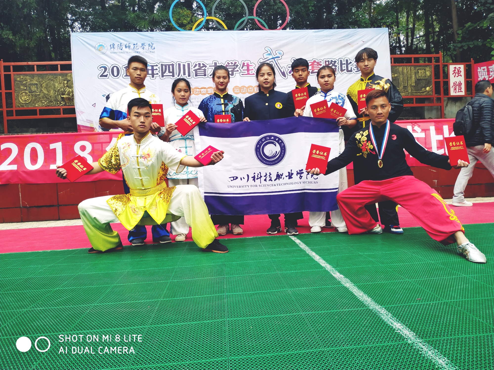11月9-11日,2018年四川省大学生武术套路比赛如期举行,四川科技职业学院武术队8名学生由体育学院陈倩老师带队参加此次比赛。